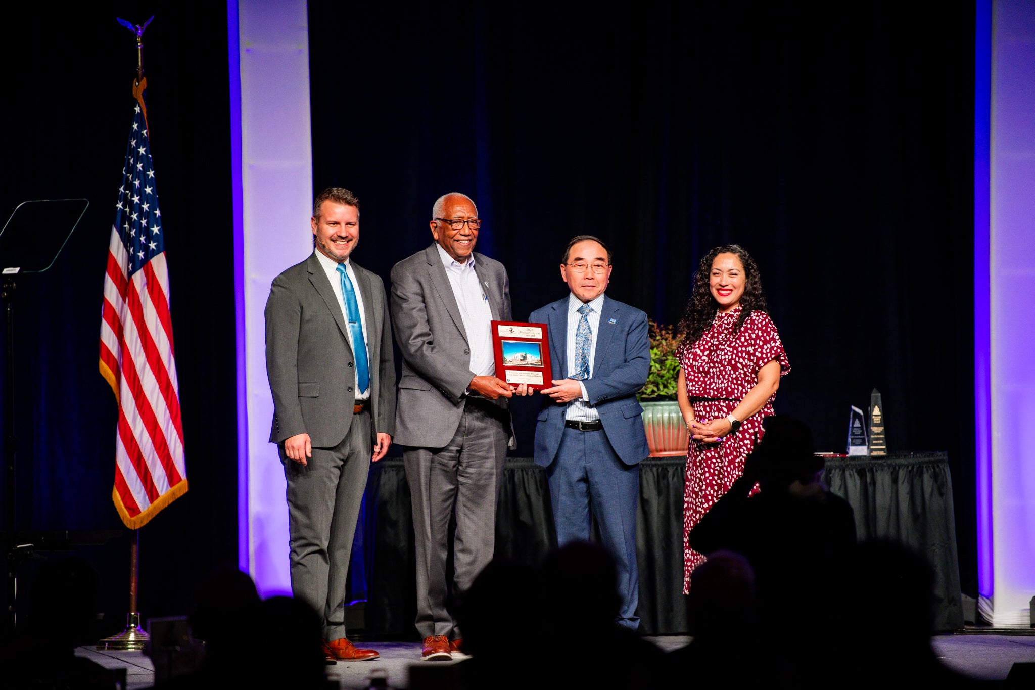 UCR Chancellor S. Jack Hu and RCCD Chancellor Wolde-Ab Isaac accepted a plaque at the event.