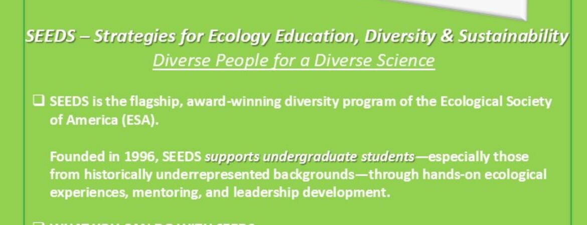 We are now recruiting mentors for the Spring 2026 cohort of the CCB-SEEDS Mentorship Program! Please sign up here by Wednesday, April 15th if your research is in the fields of Ecology, Evolution, and/or Conservation Biology, and you have a desire to foster undergraduate interest in your field. No previous experience is required and grad students of all stages are encouraged to apply!