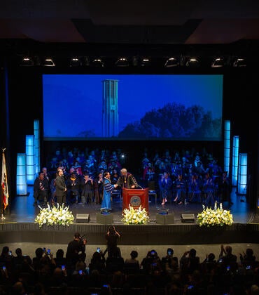 A new art display at UC Riverside’s Student Success Center pays tribute to the region’s Indigenous tribes and the trees sacred to them with a wood carving made from oak trees that once stood at the site.