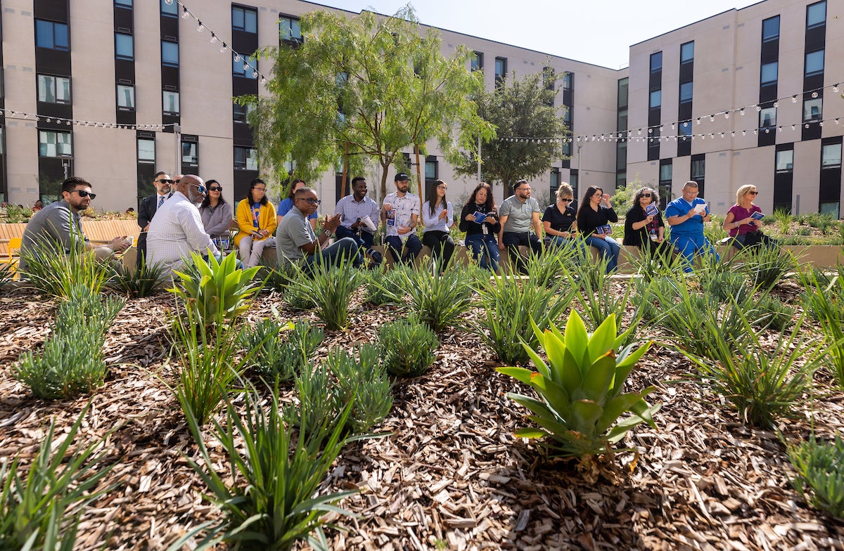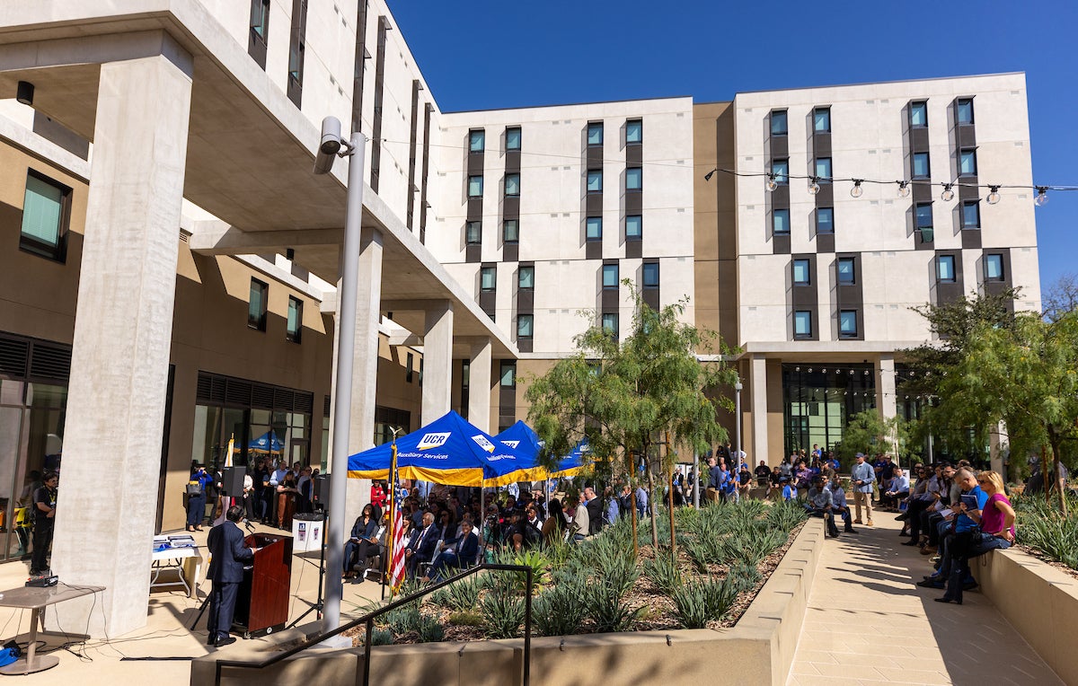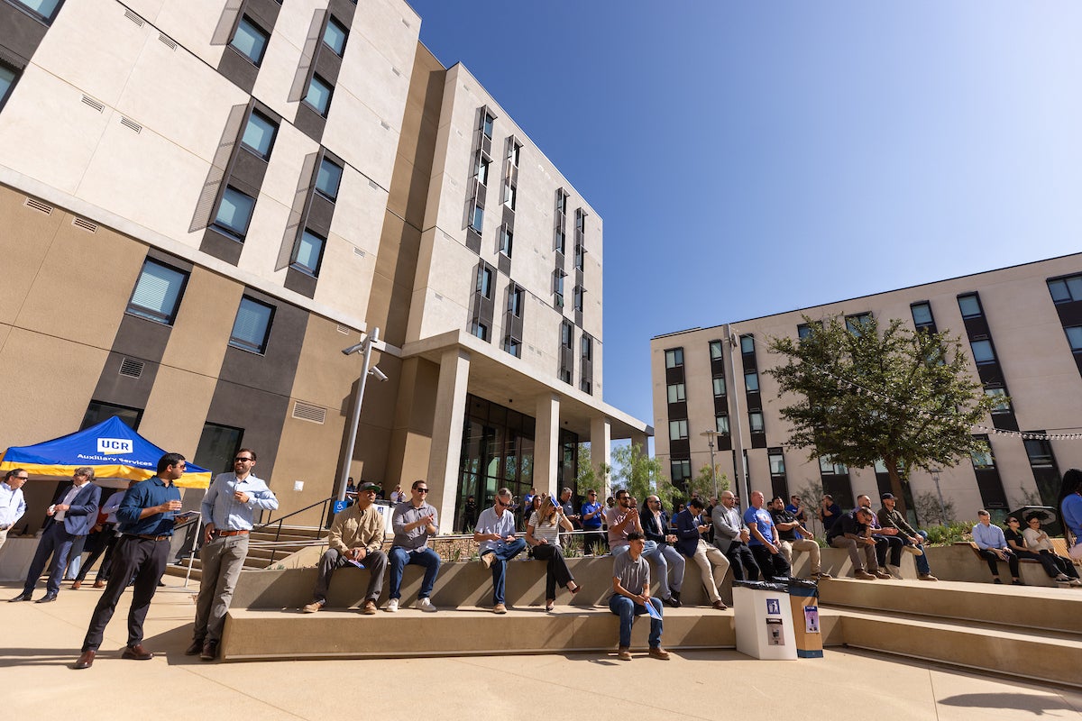 UC Riverside celebrated the completion of its North District 2 student housing complex Monday, Sept. 29, with more than 200 guests gathered at a courtyard outside one of the apartment buildings.