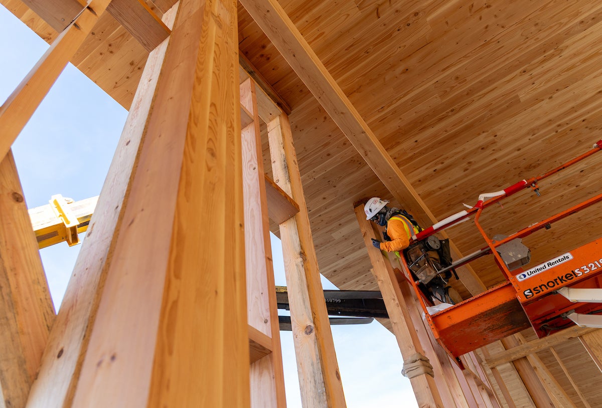 Mass timber helps meet campus sustainability goals with a lower carbon footprint compared to concrete and steel, she said.