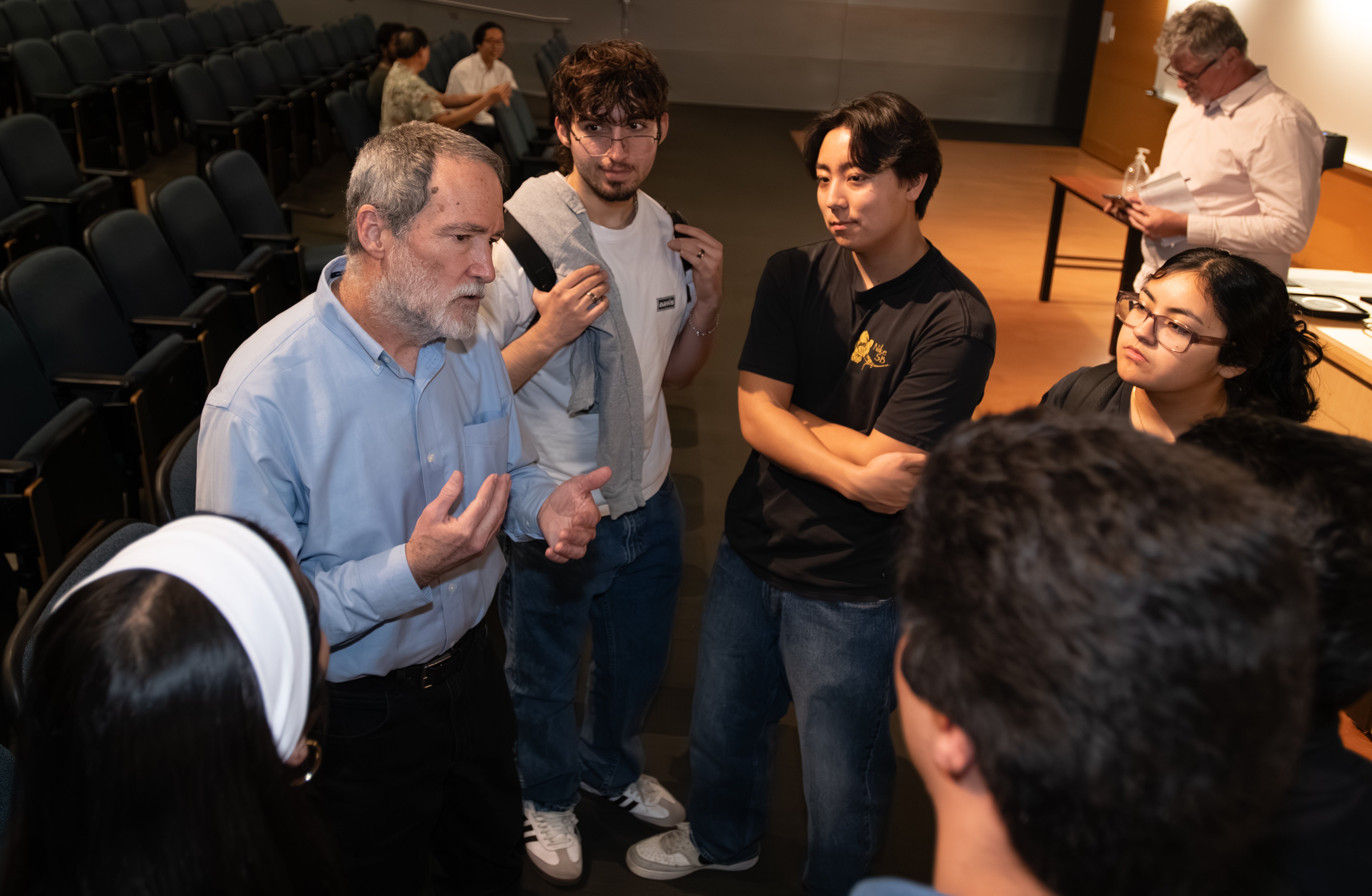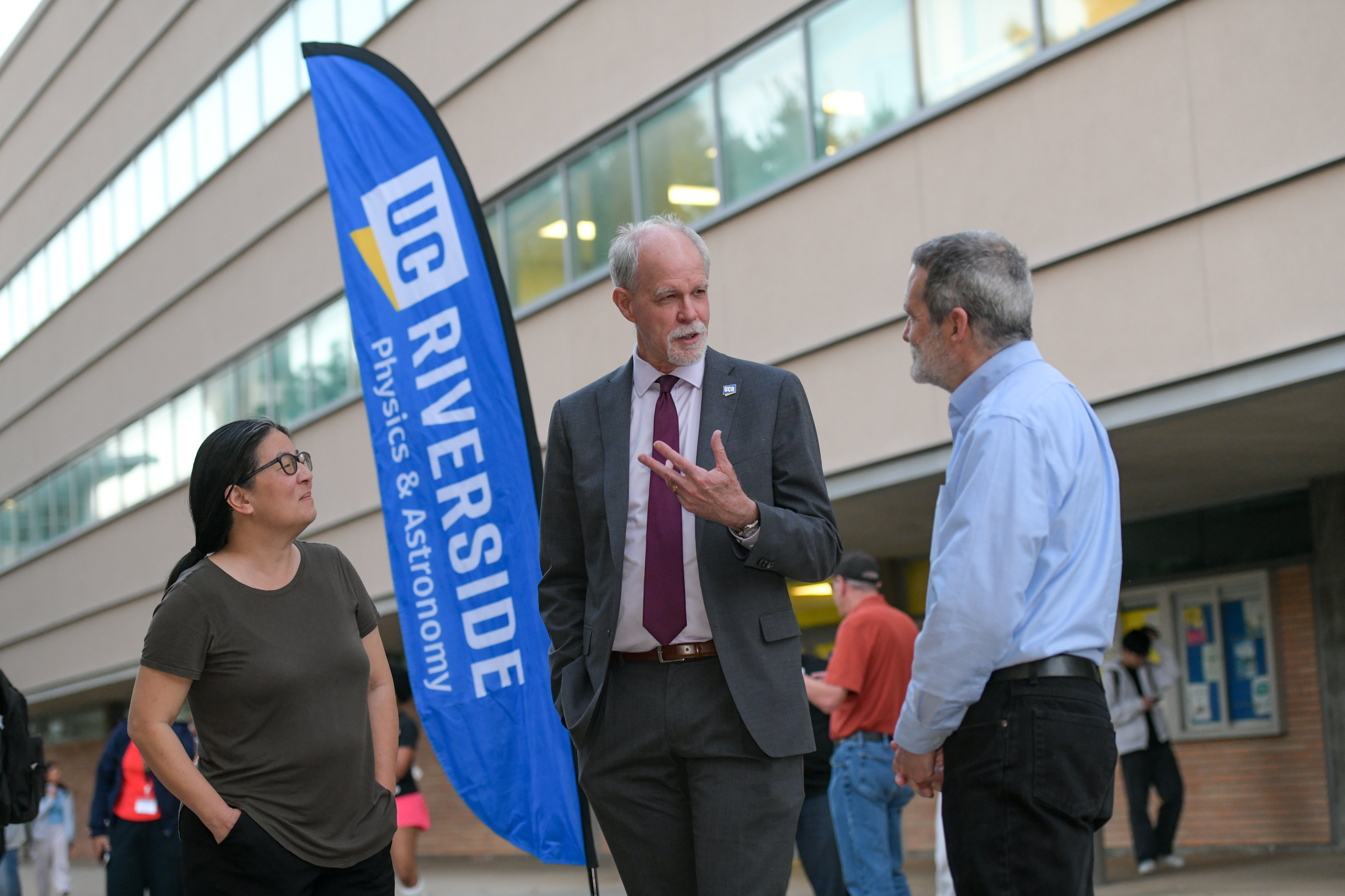 The meeting opened on February 26 with a public lecture by Brad Marston, a professor of physics at Brown University and president of the American Physical Society — the world’s largest professional organization for physicists — to a standing-room-only audience. Opening remarks were delivered by UCR Provost Elizabeth Watkins; Peter Atkinson, dean of the College of Natural and Agricultural Sciences; and Nobel Laureate Barry Barish. Barish, a distinguished professor of physics and astronomy at UCR, also serves as CECI’s director.